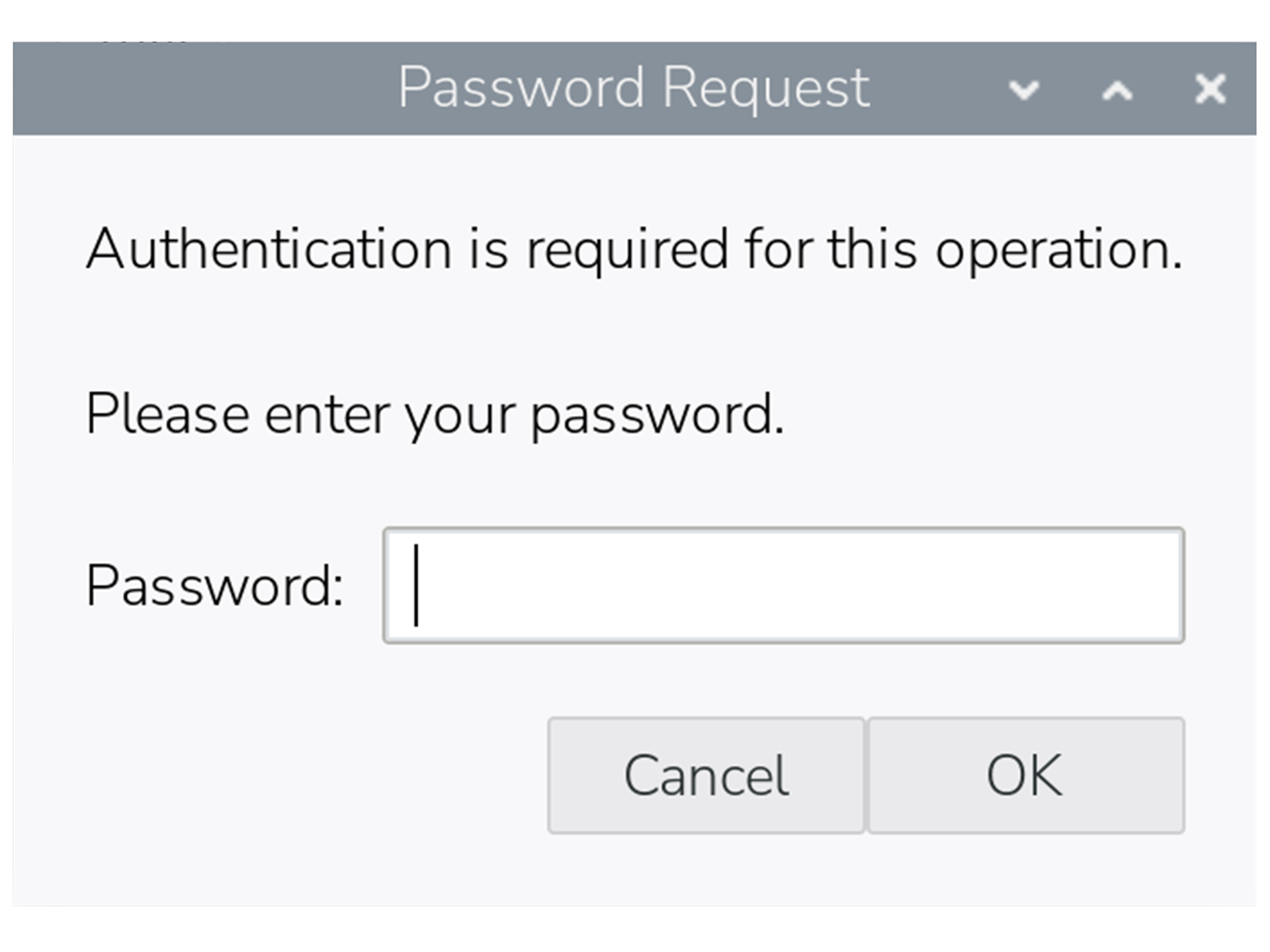 Certain actions in the desktop interface also require sudo access, including some operations in Control Centre. In these cases, a dialog box will pop up asking for the password.