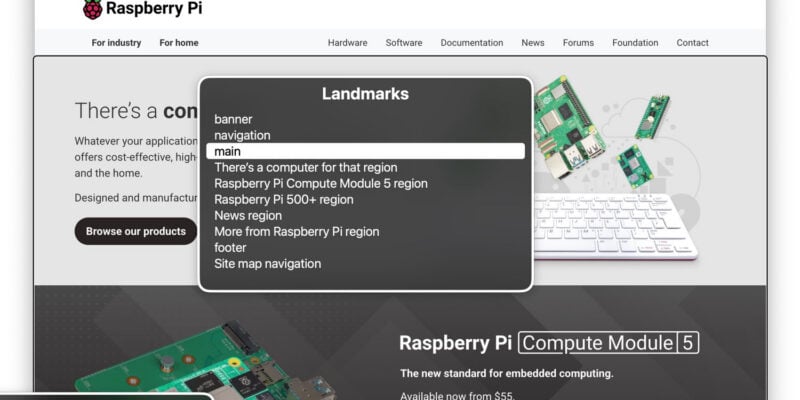 Accessibility improvements for screen readers on raspberrypi.com