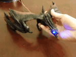 Perhaps one of the more interesting features of the cluster is that each of the Pi boards is mounted on a clear acrylic plate that is attached to a hinging mechanism. Each node is capable of moving through about 90 degrees under software control because a small electric servo motor is embedded in the hinging mechanism. The acrylic parts are laser-cut, and the hinge parts have been 3D printed for this prototype.