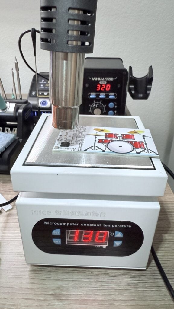 RP2040 was soldered manually onto the PCB using a hot plate and hot air