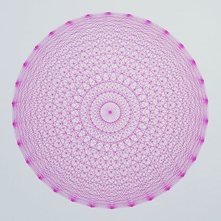 They range from holiday photographs, processed to extract particular features and rendered in silhouette, to portraits, made with a single continuous line that can be several hundred metres long, to generative spirograph images like those pictured above, created by an algorithm rather than rendered from a source image.