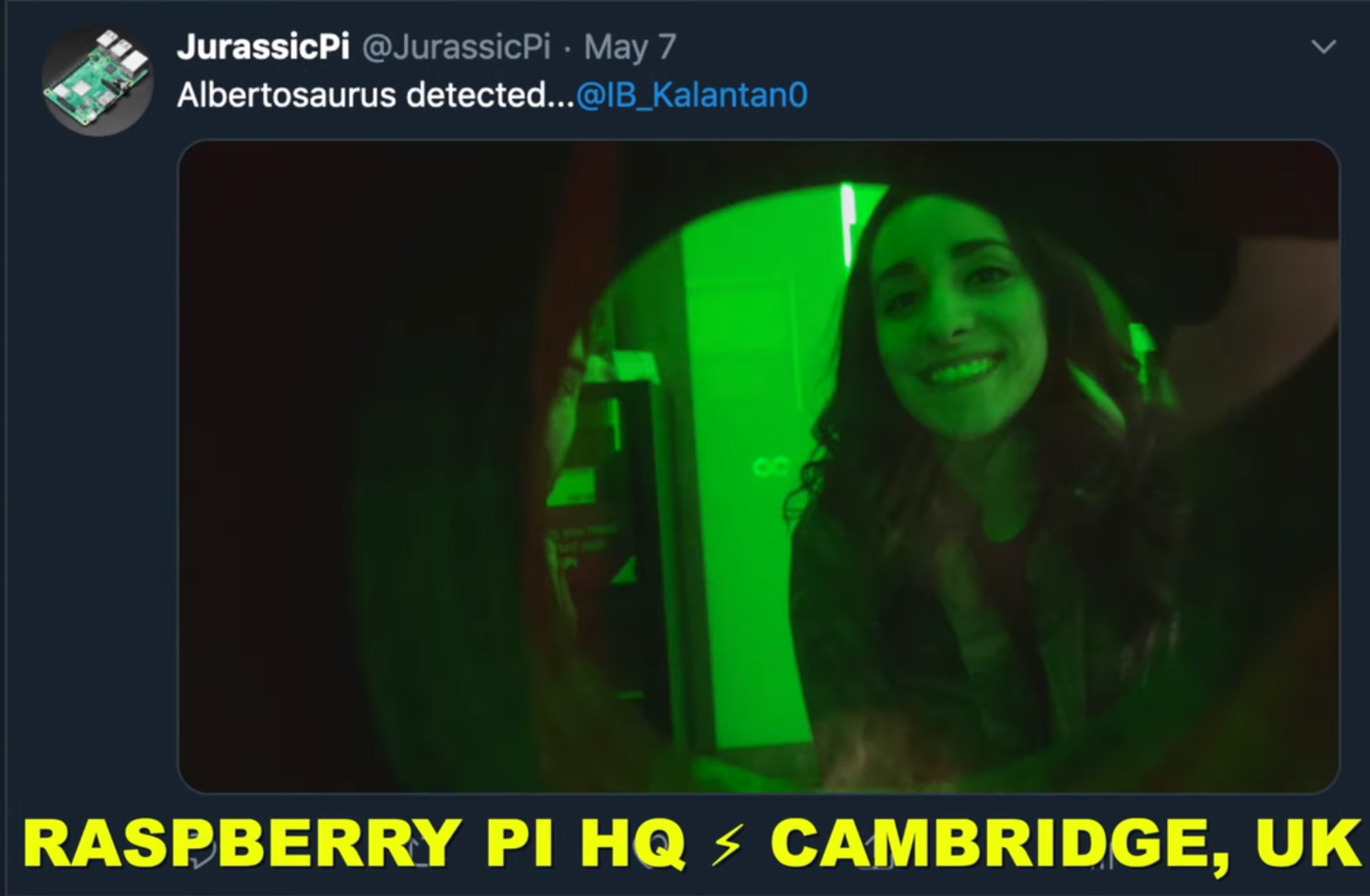 All the code is available on Estefannie’s GitHub. I love this project – I love the super clear, simple user experience provided by the LED rings, and there’s something I really appealing about the asynchronous Twitter interaction, where you mention @JurassicPi and then get an image later, the next time googles are next turned on.