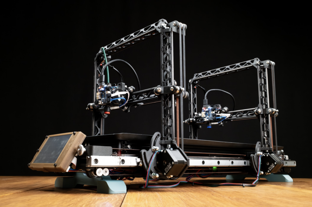 Yes! TIME is True Independent Multiple Extrusion. I came up with the name and realised that the acronym spells TIME – I’m pretty proud of that. The idea started with previous ideas – I don’t think I would have come up with this project if I hadn’t tried to print the wheel for a car. Because with the car wheel, I needed the portal to move back and forth.