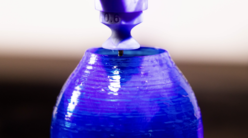 I want to investigate that further, to use pastes like resin and also to see if we can combine this. For example, with pastes and liquids, we should be able to print a regular polymer and place glue between the layers… or maybe add ceramics or concrete as an infill to make parts stronger, maybe even stiffer. I want to try to dissolve polymers in a solvent to see if I can just pump the soft polymer to see if that can improve layer bonding. And I think that with this printer, it would also be possible with other printers, but this printer makes it convenient for me to combine these multiple materials. So there’s a long road ahead still.