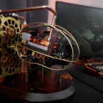 Jean: I wanted to add a warm colour to contrast against the white, and I originally considered using real copper rings. However, during the sketching phase, I wanted to add more reflective facets than you get on rings, so I printed them with a more complex shape. If I’d had a tonne of time, I could have handcrafted them, but this time I wanted to test myself and see what I could do with just 3D printing, so I bought some Giantarm Silk Copper Filament and the results didn’t disappoint – they do give a premium vibe to the build.