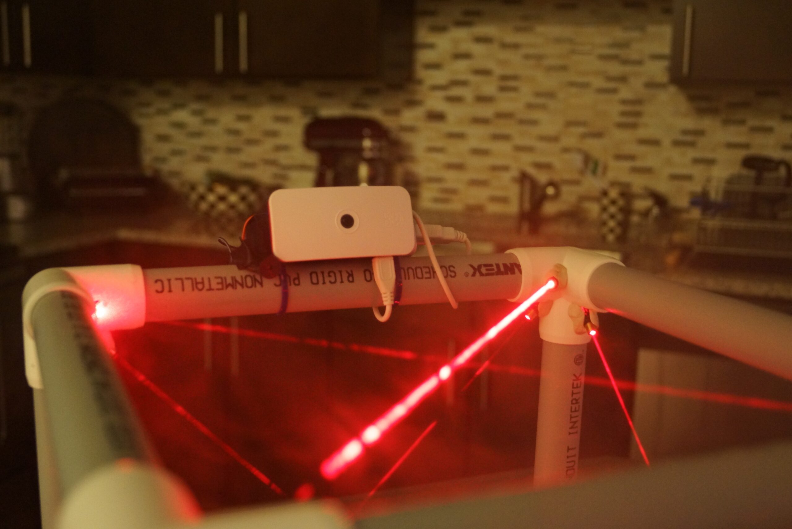 Although the lasers were not very strong, I still strained my eyes after long hours of calibrating — hence the sunglasses! Working indoors with lasers, sunglasses, and code was weird. But now I can say I’ve done that…in my kitchen.