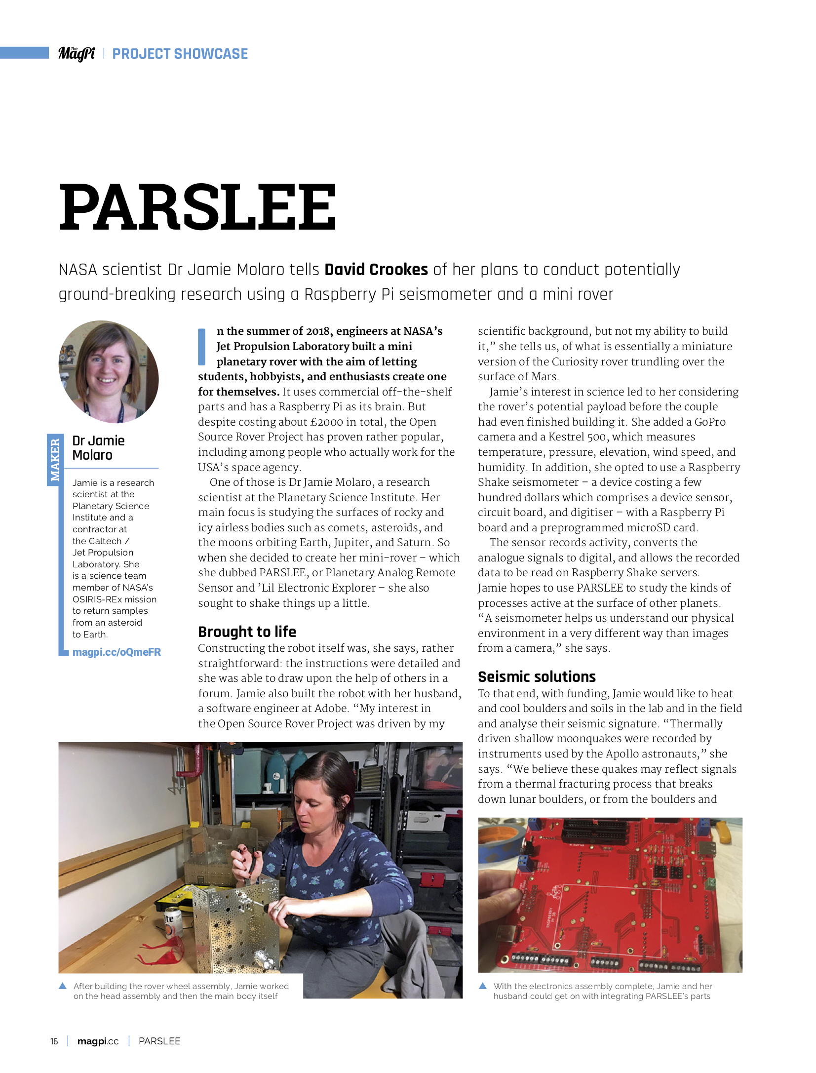 NASA scientist Dr Jamie Molaro plans to conduct potentially ground-breaking research using a Raspberry Pi seismometer and a mini rover.