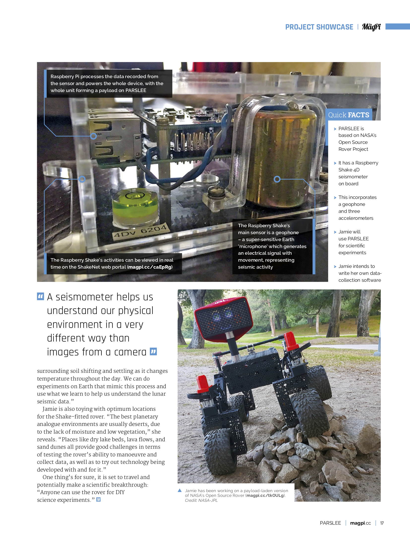 The sensor records activity, converts the analogue signals to digital, and allows the recorded data to be read on Raspberry Shake servers. Jamie hopes to use PARSLEE to study the kinds of processes active at the surface of other planets. A seismometer helps us understand our physical environment in a very different way than images from a camera, she says.