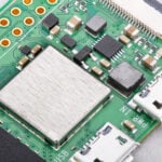 Next to the large RP3A0 package, you’ll find a large metal shield can, which covers the wireless circuitry on the board and protects it from external interference. Like all Raspberry Pi products since 3B+, Zero 2 W has FCC modular certification, which reduces the compliance workload involved in incorporating it into an end product.