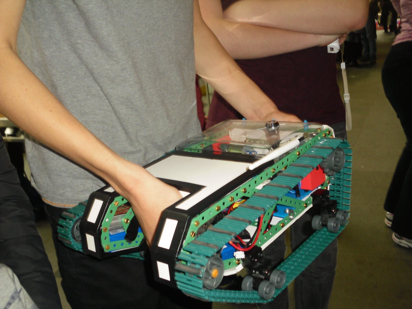 Amy Willis and her show-and-tell robot, Huggles: Amy did all the soldering herself.