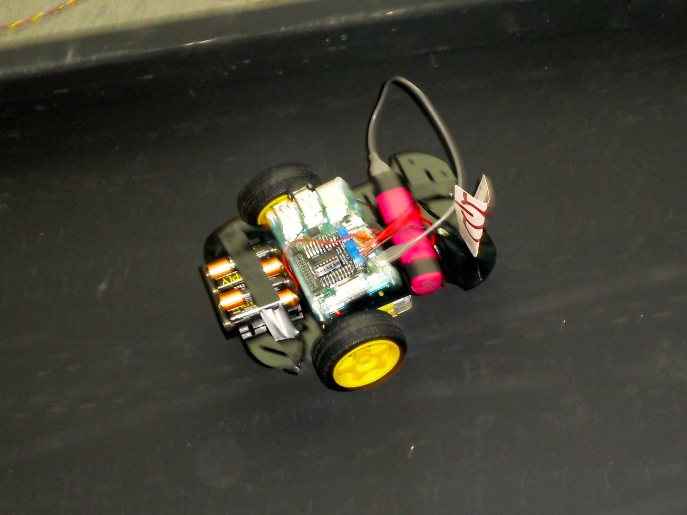 Now you can all see, in great detail, our MacGyver style robot which uses a PotNoodle pot and lots of Blutack.