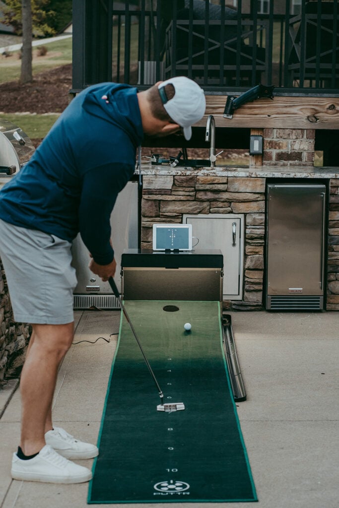 Matt Allard, the CEO and founder of Puttr, wanted to take the tedium out of putting practice. Putting, I’m told, is the most important bit at the end of a golf game, when you try to sink the ball into the hole. The idea is that you don’t need to go out on a long, expensive round of golf just to get a little putting practice. Driving ranges only let you practise the big full swing shots, which are much less monotonous and look more impressive than tiny little putts, hence putting practice taking a back seat for many amateur and professional golfers.