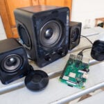 u/breadtangle neatly tucked a pair of Logitech z506 speakers on the sides of the barrel, where they could be protected by the overhang of the glass screen cover.