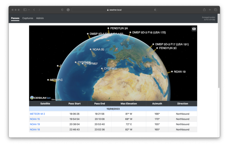 The community of experienced engineers, radio operators, and tinkerers that contributed to the success of the open source raspberry-noaa-v2 software did a great job of making the setup of your weather station as easy as possible. The software shows you all the relevant satellite positions overhead and sets your system to record signals whenever a satellite passes over your location.