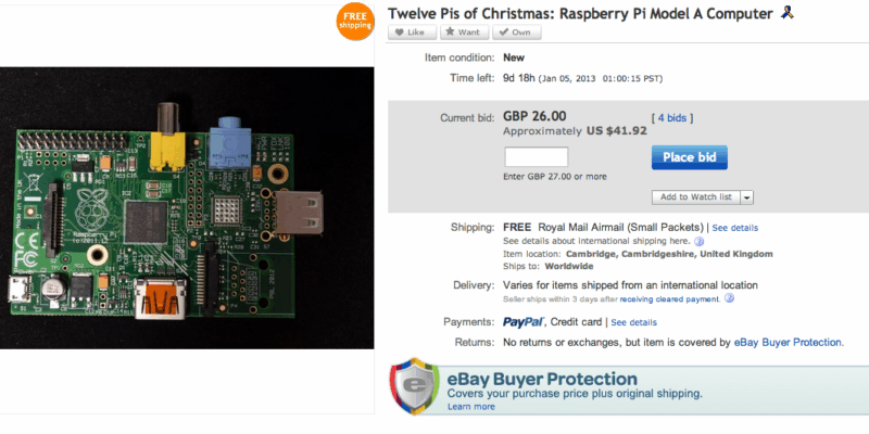 We're auctioning off the very first 12 pre-production Model A Raspberry Pis,