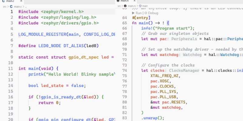 Develop embedded firmware for Pico using Rust or Zephyr with pico-vscode