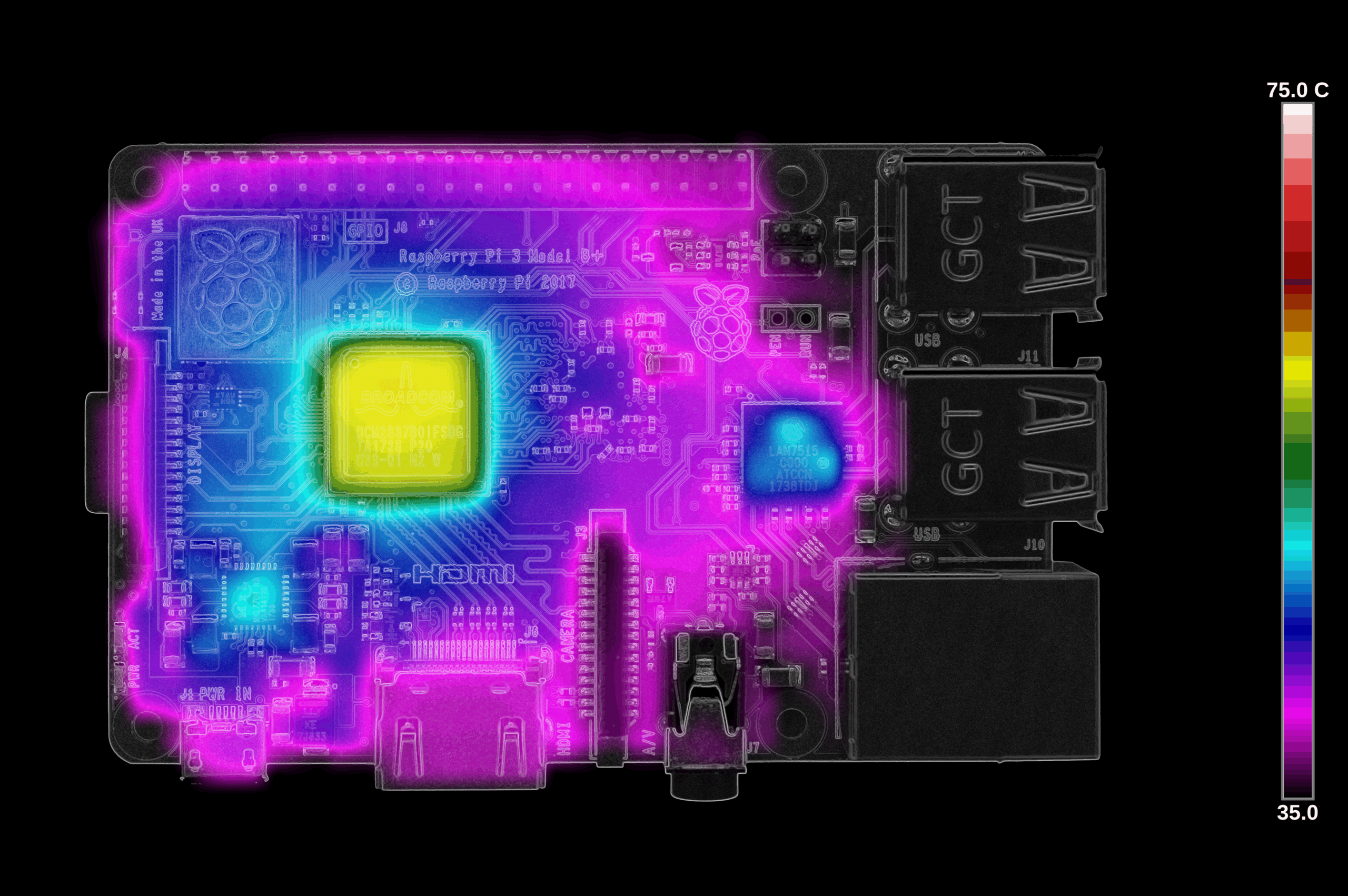 - Raspberry Pi 3B+ heat distribution (idle)