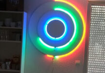 (mathieupassenaud.fr) Three circles of LEDs for hours, minutes, and seconds -